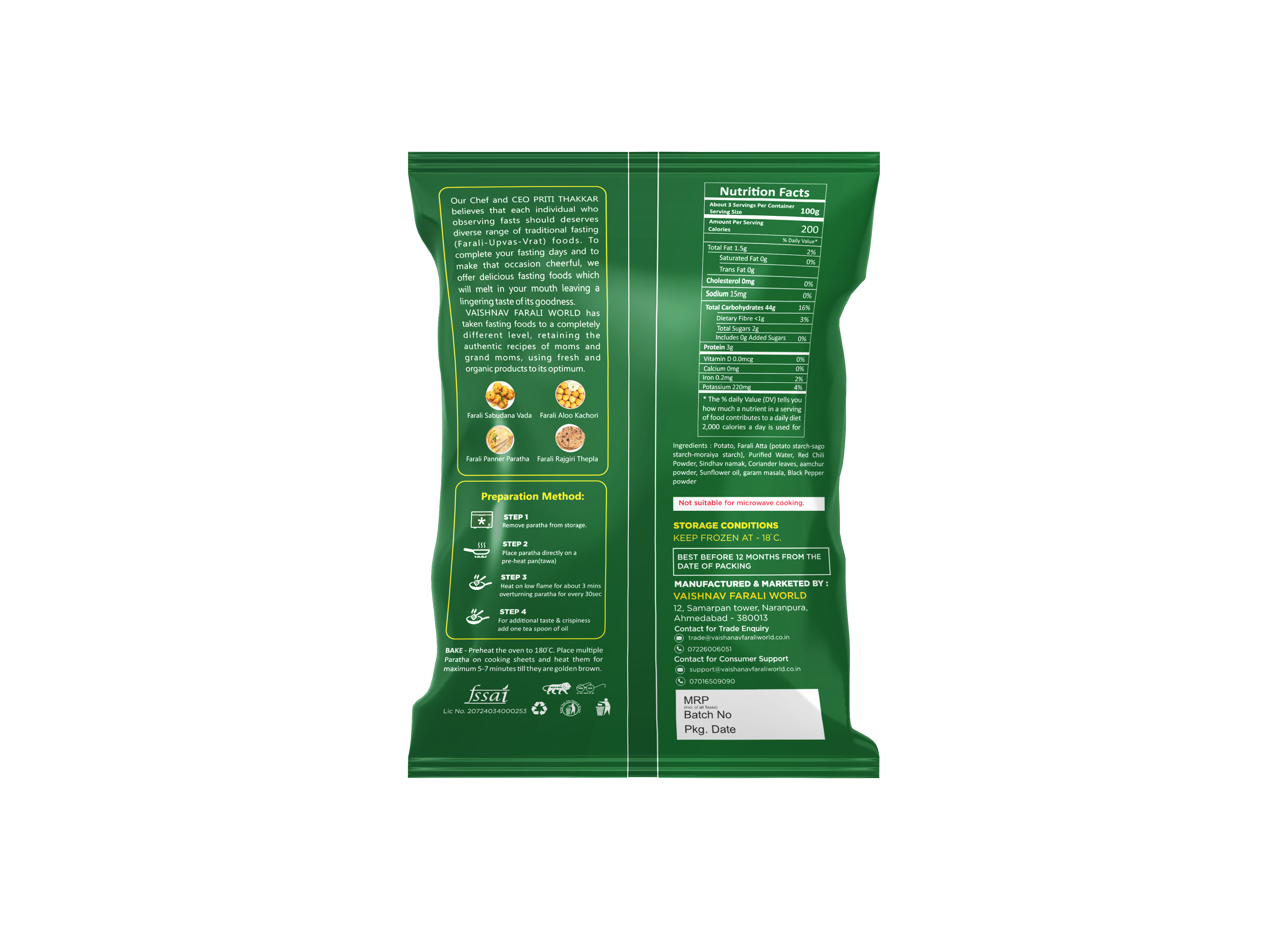 - This ready to eat Farali aloo paratha is made from high quality ingredients, contains no added artificial – colors & flavors and is sealed with care