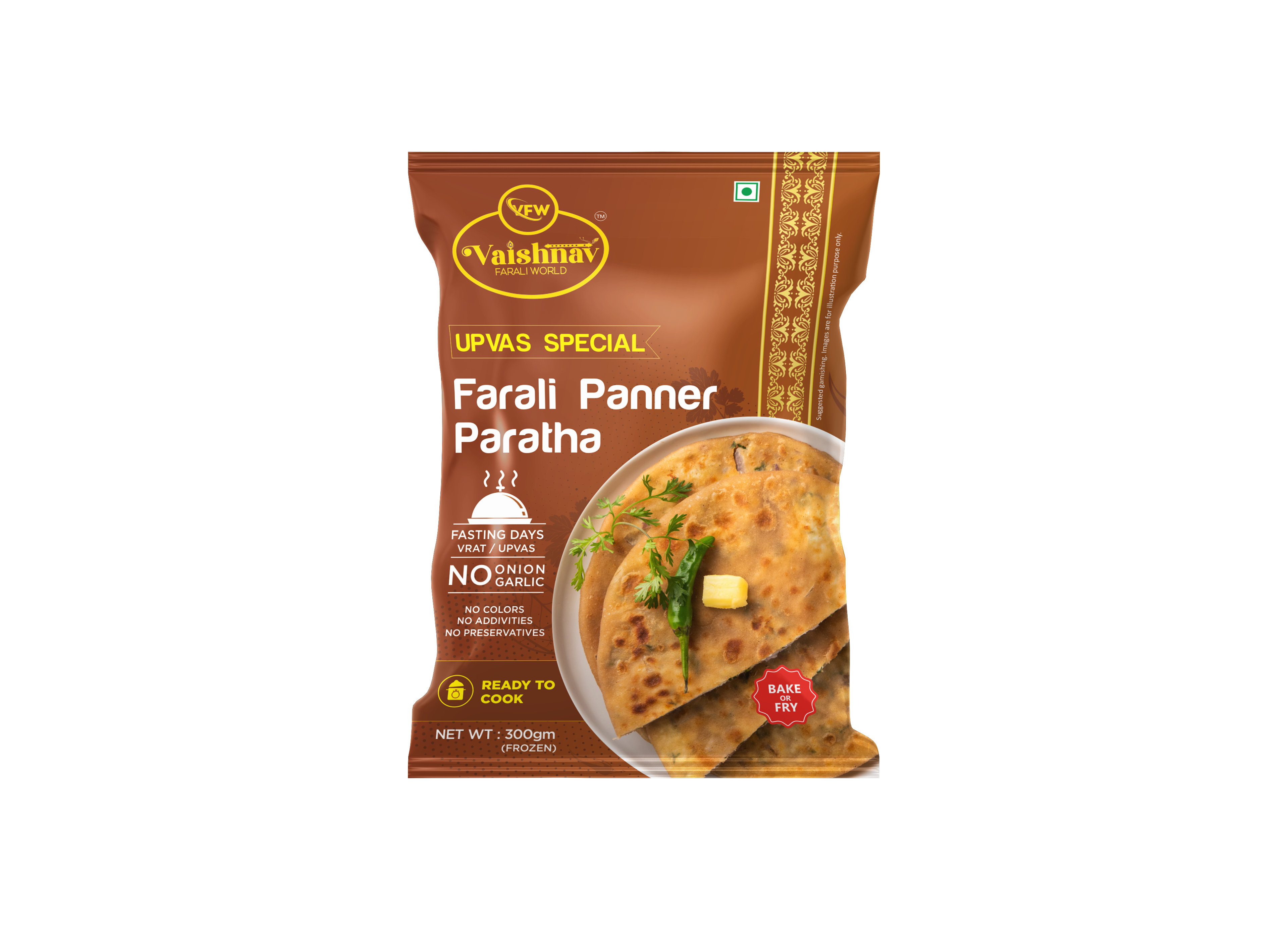 • Vaishnav Farali World’s Farali frozen paneer paratha is the typical Farali/Vrat/Upvas dish that is nothing short of irresistible. It is quick and easy to make when you are craving a delicious meal on your fasting days but are running low on time.