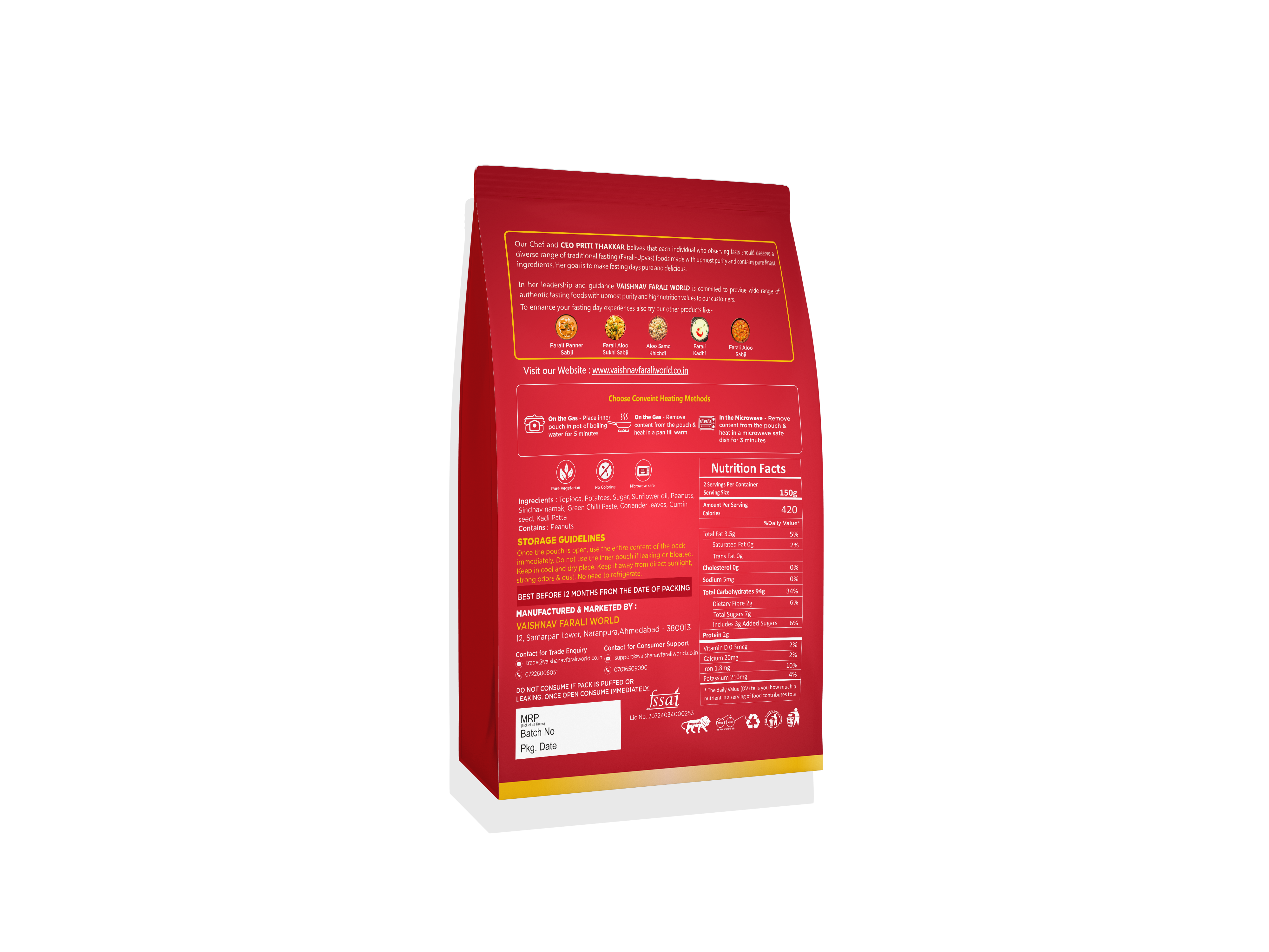 - Also try our other FARALI ready to eat food range like Farali Aloo Sukhi Bhaji, Aloo Sabji with Gravy, Farali Samo khichdi, Farali Paneer Sabji, Farali Dahi Curry, Farali Plain Samo, Farali Kadhi etc.